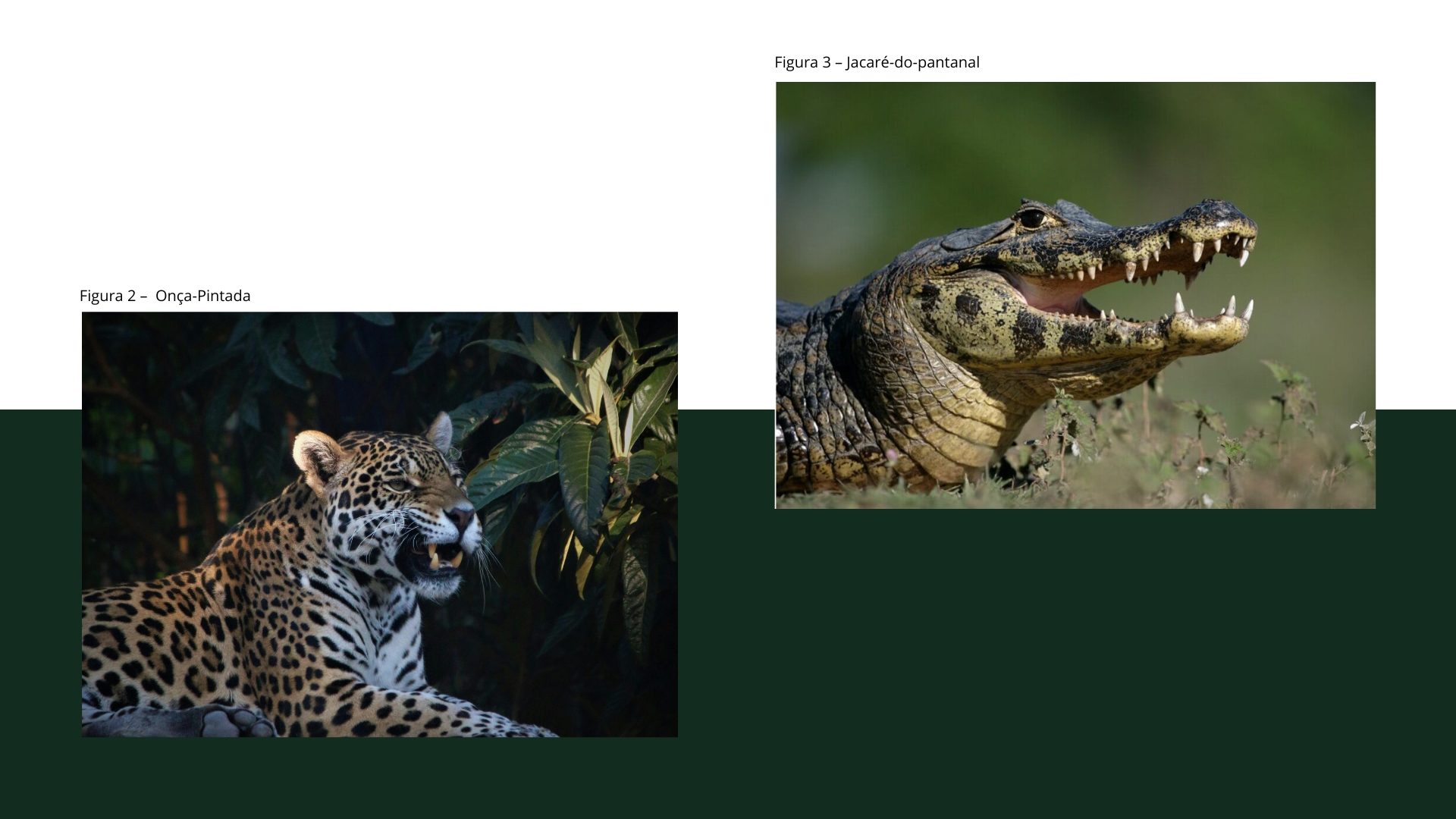O Pantanal é um dos biomas mais ricos em fauna do Brasil, influenciado pela Amazônia, Cerrado, Mata Atlântica e, parcialmente, pela Caatinga. Abriga 132 espécies de mamíferos, 85 de répteis, 463 de aves, 35 de anfíbios e 263 de peixes, incluindo animais emblemáticos como onça-pintada, jacarés, tuiuiú e dourado. Apesar dessa biodiversidade, a região enfrenta ameaças significativas devido à caça e pesca ilegais, especialmente contra jacarés e peixe-dourado, cuja fiscalização é insuficiente, colocando em risco a preservação desses animais.